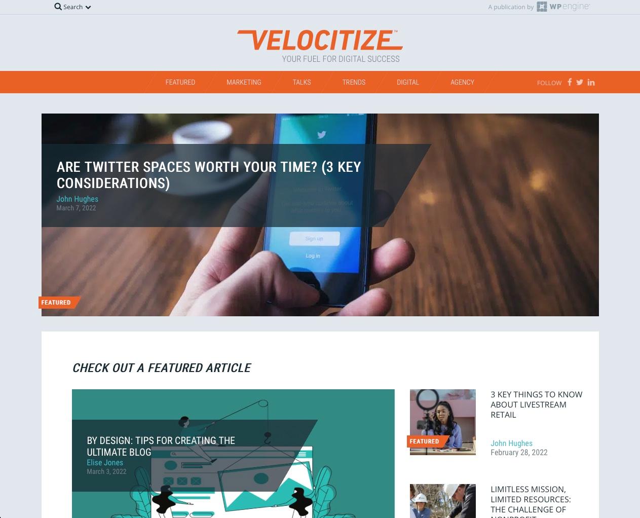 It’s also home to Velocitize Talks, an award-winning video series featuring agency innovators, digital disruptors and marketing leaders from around the world.
